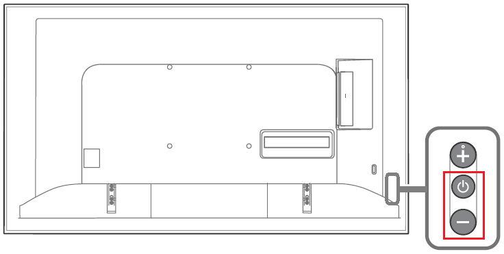 - Simultaneously press and hold down the Power and volume Down (-) buttons on the TV (not on the remote), and then (while holding the buttons down) plug the AC power cord back in.